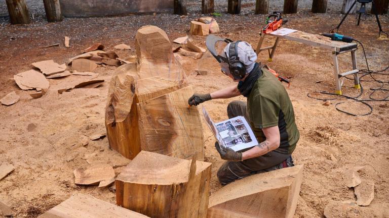 Les trois finalistes s'affrontent pour remporter le titre de maître de la tronçonneuse et repartir avec les 50 000 dollars promis au gagnant. Le thème de la dernière sculpture promet un résultat grandiose : le parcours du héros.