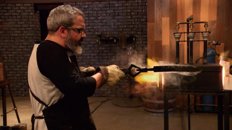 Le meilleur forgeron Les quatre candidats doivent forger une lame nouvelle à partir de vieux morceaux d'acier de Damas. Les finalistes s'affronteront autour d'une arme aussi fine que mortelle : la rapière des mousquetaires.