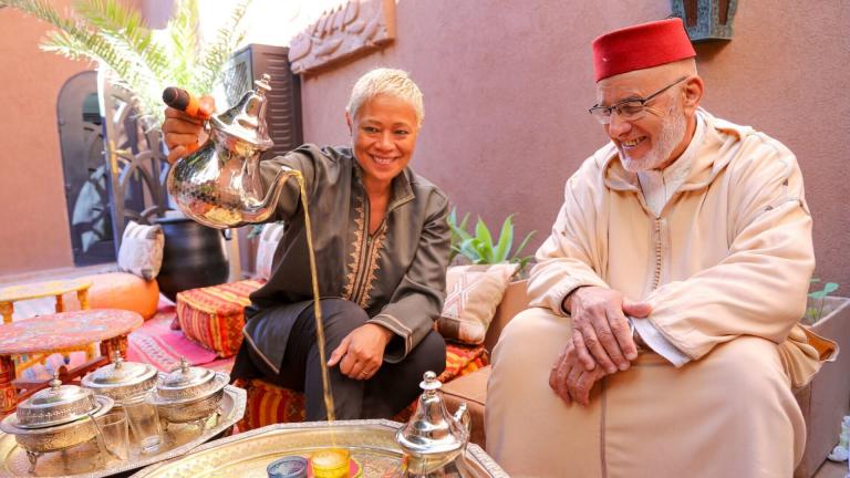 Amazing Hotels: Life Beyond the Lobby Monica Galetti and Rob Rinder travel to Kasbah Tamadot in the Atlas Mountains of Morocco. With Sir Richard Branson as their boss, they discover how genuine Berber hospitality and spectacular views of the landscape make it unique. Monica helps the chef source local produce at the nearby market and gets to know a very famous visitor, while Rob mucks out the hotel stables and guides guests on a mountain trek.