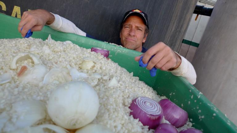 Mike se rend dans une décharge pour découvrir une méthode de lutte contre les mouettes ensuite il part travailler sur un transformateur de viande mobile.