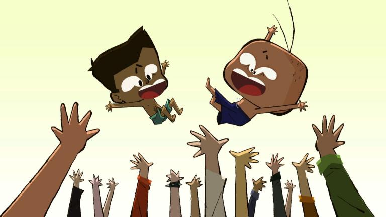 Manon, Bouba, Julia et Sam, quatre jeunes animateurs, divertissent les enfants avec une pointe de pédagogie.