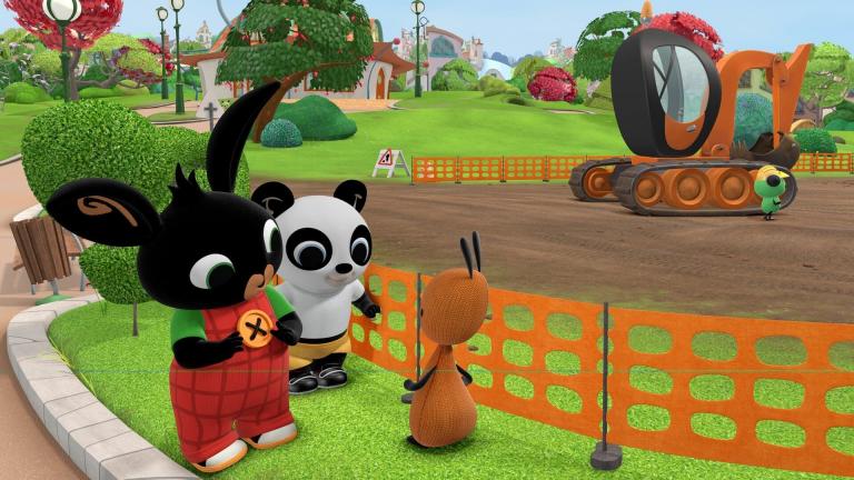 Accompagnés de Flop, Bing et Pando vont jouer au parc. Ils observent des tractopelles en train de creuser des emplacements pour planter des arbres et décident d'imiter les machines. Bing est un excavateur tandis que Pando déverse le sable. Flop saute dans le trou et devient l'arbre...