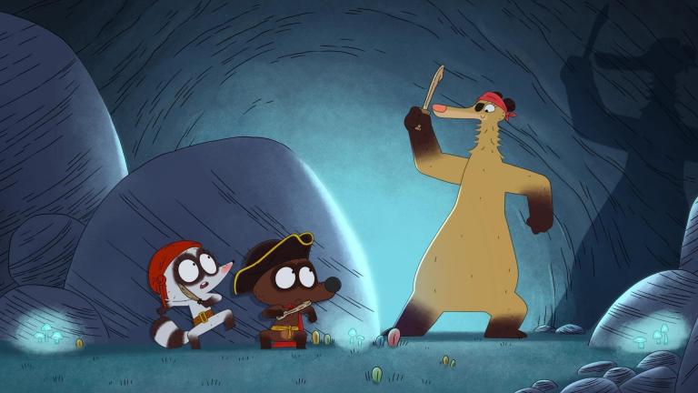 Pompon Ours Dans l'atelier, Pompon et Rita découvrent une carte au trésor signée " Linette, la Terreur des Mers ! ". Linette était pirate avant d'être la maman de Pompon ? Ils décident de trouver son trésor mais la carte n'indique aucun emplacement précis.