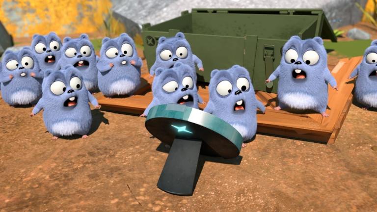 Grizzy et les lemmings Des champignons rebondissants poussent dans la cour, Grizzy les écrase mais cela crée des champignons identiques. Les Lemmings s'amusent.
