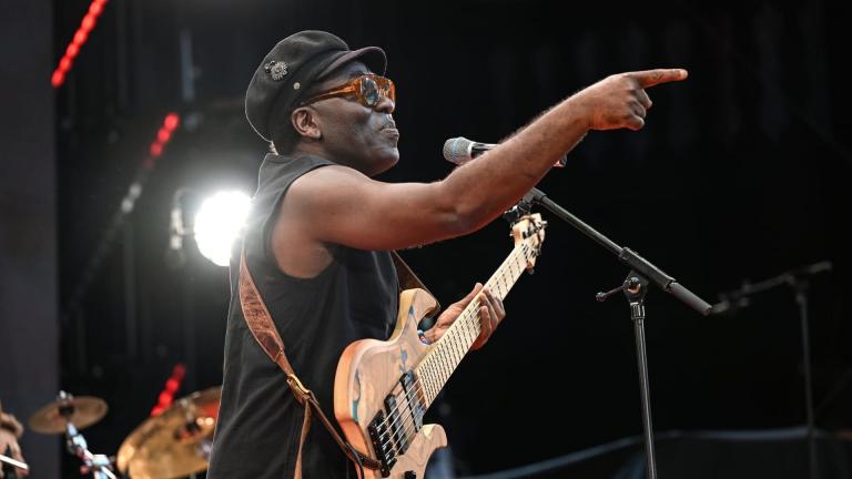 Richard Bona - Jazzopen Stuttgart 2024 Richard Bona (basse, voix), Mica Lecoq (claviers), Nicolas Viccaro (batterie), Ciro Manna (guitare), Alex Herichon (trompette) Stuttgart, Jazzopen, 22 juillet 2024