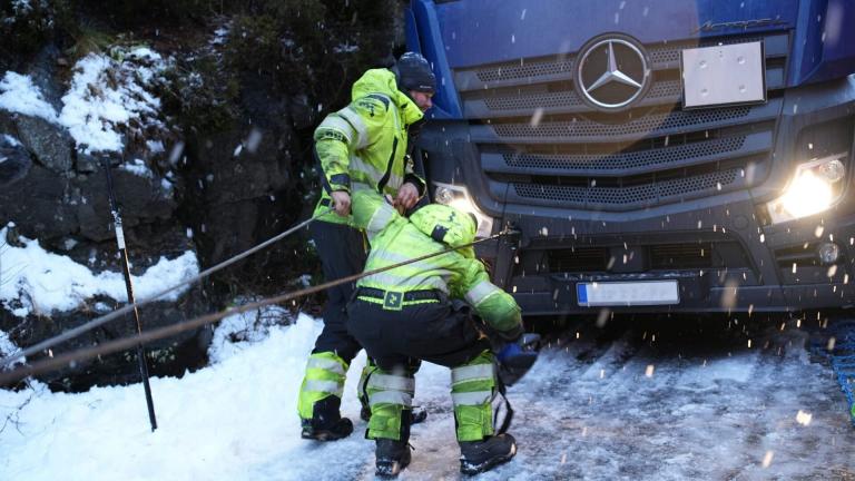 La route de l'enfer : Norvège Thord doit dégager les véhicules de la chaussé après une collision entre deux camions lors d'une tempête de neige. Joe Roger et Raido s'occupent d'un semi-remorque.