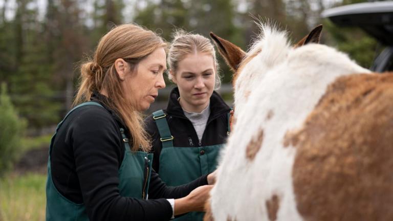 Michelle ou la vie sauvage Le docteur Oakley examine deux poules qui ont du mal à marcher, elle redoute que leur pathologie invalidante ait contaminé le reste de la volée. Après deux ans sans naissance, des éleveurs de rennes veulent à tout prix savoir si leurs femelles sont enfin fécondées. L'équipe soigne une grosseur suspecte sur la griffe d'un chien et le docteur Oakley s'occupe d'une vache qui adore faire des câlins.
