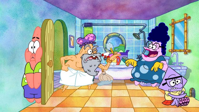 Karen et Plancton reçoivent un bébé à la maison.