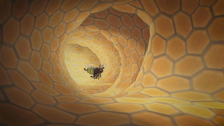 Peppa et George rendent visite à Mamy et Papy Pig. Papy Pig montre à Peppa et George son "hôtel à insectes" spécial, construit à partir de vieux bâtons, bûches, briques, pots et feuilles du jardin dans lequel toutes sortes d'insectes peuvent vivre.
