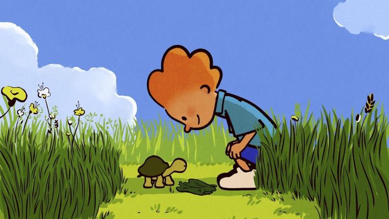 Plom overwint zijn voorleesangst als alle vriendjes tijdens de Blije Boekendag voorlezen uit hun lievelingsboek.