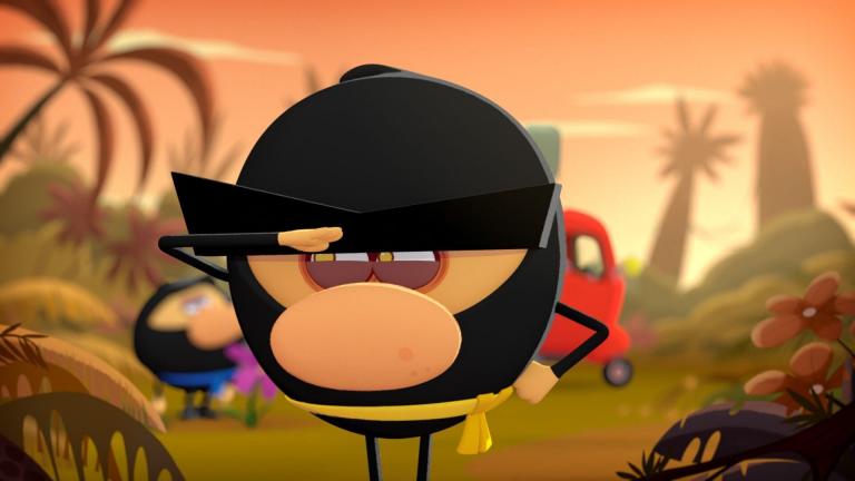 Un girafon et un éléphanteau sont émerveillés par le brio d'une autruche et d'un kangourou yamakazis...