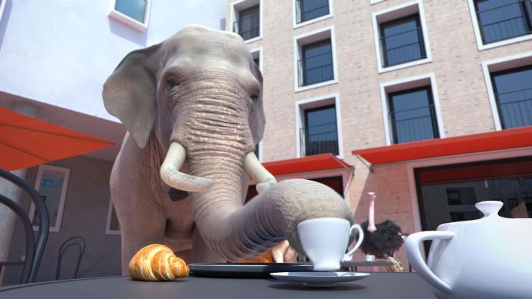 Athleticus Un serveur éléphant participe à une course de garçons de café pour soigner sa maladresse...