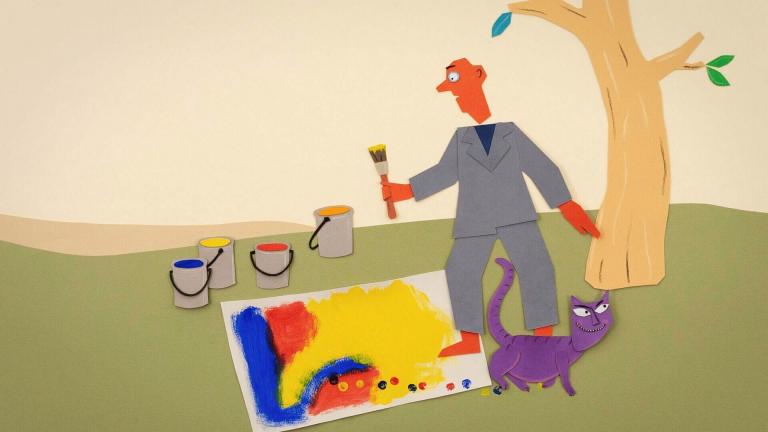 Monsieur Papier découpe un paon aux couleurs panachées. Mais ensuite le paon replie sa queue. Monsieur Papier a l'air maussade. Il coupe une queue supplémentaire qu'il attache également au paon. Le paon replie à nouveau sa queue. Il fait une belle troisième queue mais le paon fait de même.