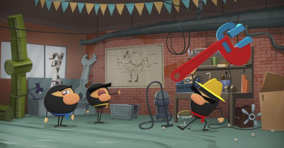 La série d'animation sur un service de livraison géré par les trois ninjas: Aka, Kiro et Konpeki, possédant les pouvoirs magiques exceptionnels: de regarder et voyager à travers le temps et l'espace. Ils livrent les objets à n'importe quel client, de n'importe quel endroit, à n'importe quel moment en montrant que l'imagination n'a pas de bornes.Casting