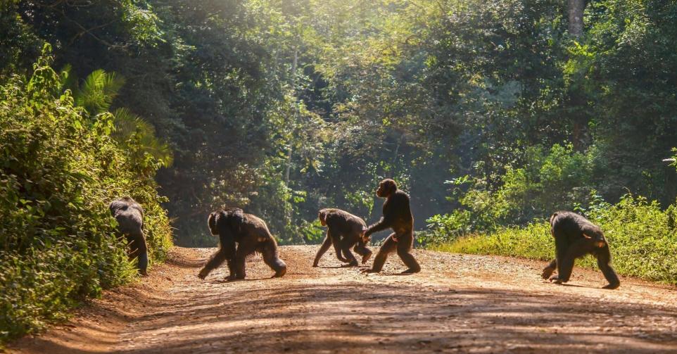 Eléphant, chimpanzé, gnous