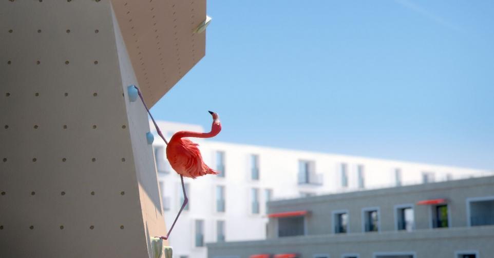 Une tortue et un flamant s'affrontent dans une compétition d'escalade urbaine. Le flamant facile prend largement la tête mais la tortue rusée n'a pas dit son dernier mot.Casting