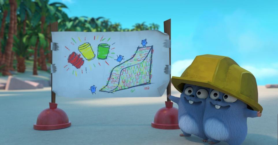 Les lemmings utilisent toutes les canettes qu'ils peuvent trouver pour construire un toboggan sur la plage. Grizzy, agacé, les reprend aux lemmings.Casting