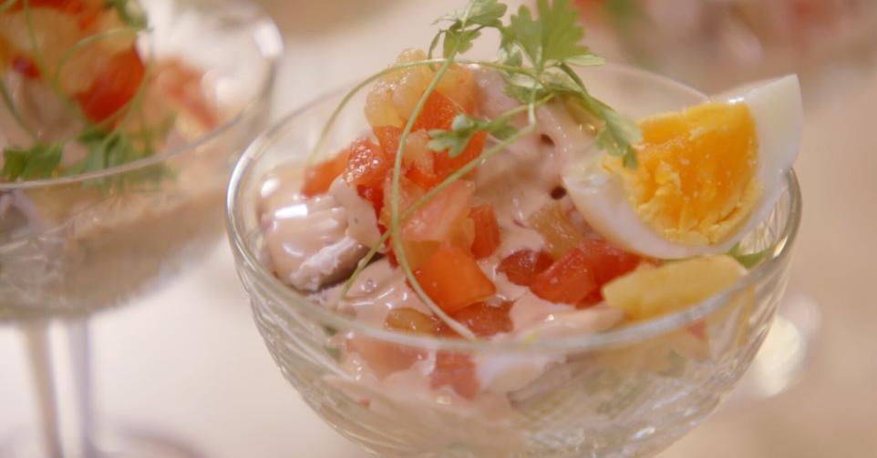 Een makkelijk voorgerecht met kip, ananasblokjes en rijst.