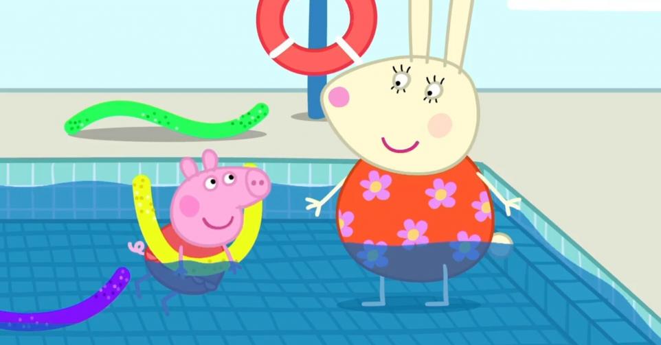 Peppa et ses amis prennent un cours de natation dans le petit bassin avec mademoiselle Rabbit. Chacun a une bouée. Quand arrivent Rebecca et sa maman, il s'avère que celle-ci ne sait pas nager. Alors elle décide d'apprendre avec les enfants. A la fin du cours, tout le monde joue avec des bouées géantes...Casting