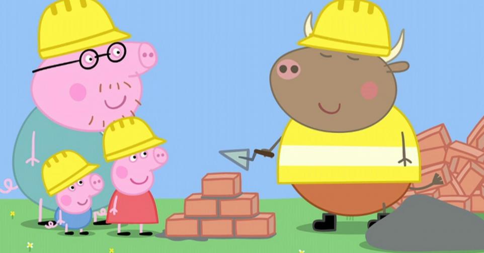 Papa Pig emmène Peppa et George visiter la maison en construction de monsieur Bull...Casting