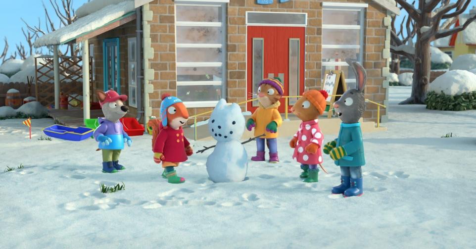 Pip et Posy et leurs amis s'amusent à prendre part au tournoi des jeux d'hiver de Frankie.Casting