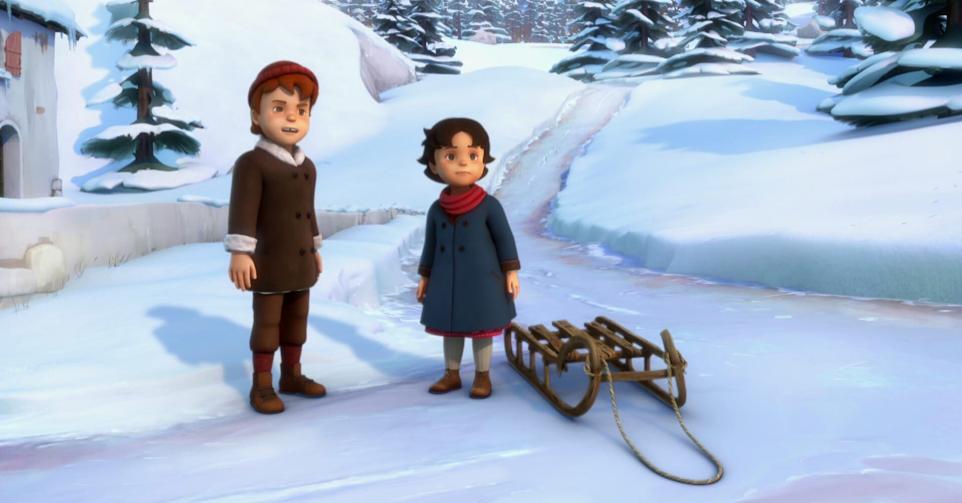 C'est l'hiver dans les alpages. Heidi descend au village en luge et se retrouve derrière l'école.Casting