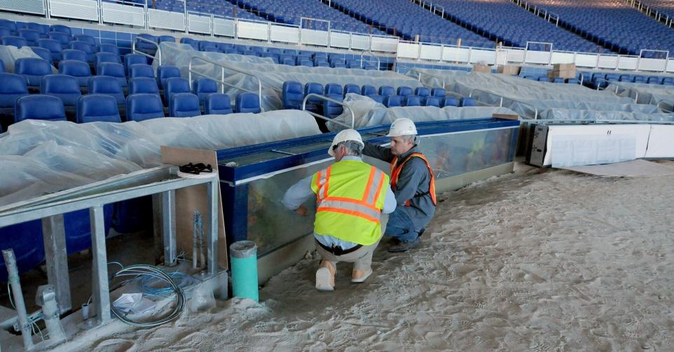 Mat se réjouit à l'idée de créer des aquariums pour le nouveau stade de base-ball des Marlins, à Miami. L'entrepreneur du chantier souhaite que ces derniers soient assez grands pour tapisser un coin entier du stade. L'équipe de Living Color doit proposer un design qui réponde aux désirs du président du stade et faire en sorte que les bassins soient assez solides pour résister à un éventuel choc de balle.Casting