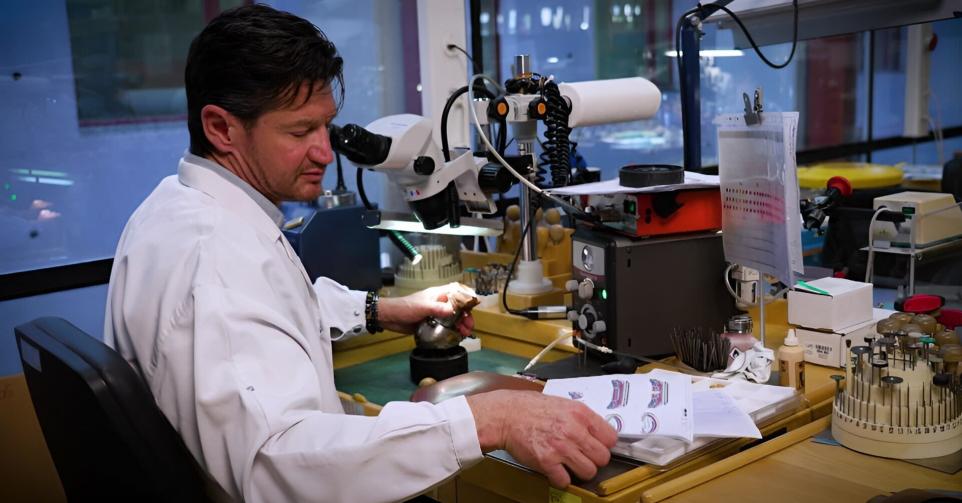 Technique, patience, savoir-faire... Du sertissage à la mosaïque de cuir, gros plan sur des gestes qui aboutissent à la création d'une pièce d'exception d'horlogerie.