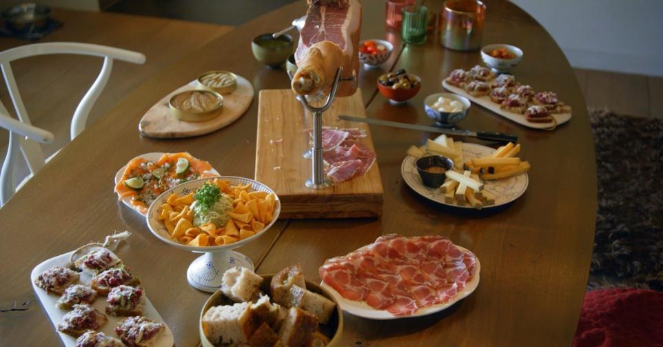 Tartaar van rundvlees met Ciprianisaus, crème van geitenkaas en avocado met chips en tuinkers.